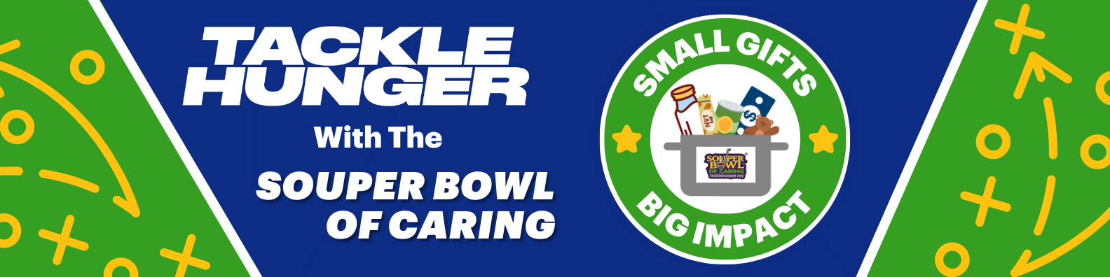So… while you are planning your Super Bowl day, remember to save a little $$ to donate and help TACKLE HUNGER herE at home!